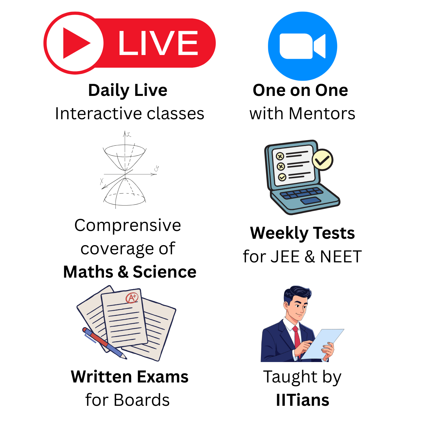Live classes taught exclusively by IITians who have cracked the toughest exams themselves.